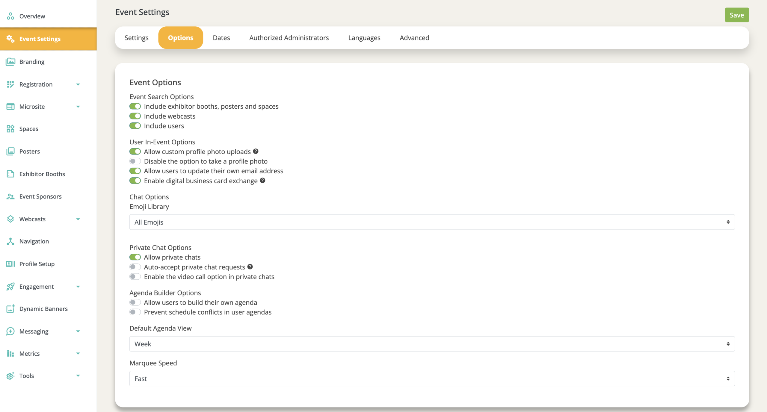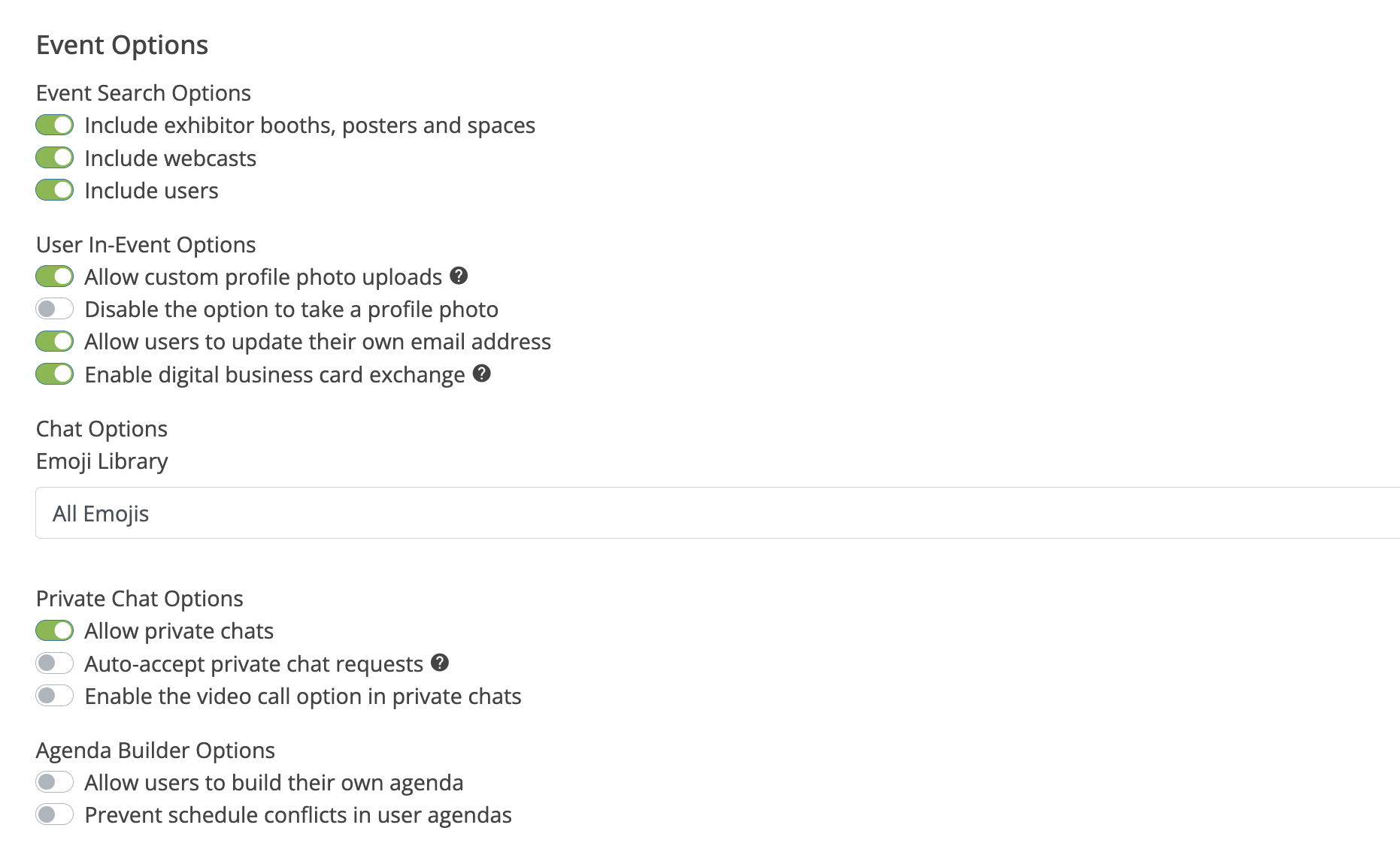 - Agenda Builder Options (If you want to limit the items that users are able to add to their agenda, etc.)