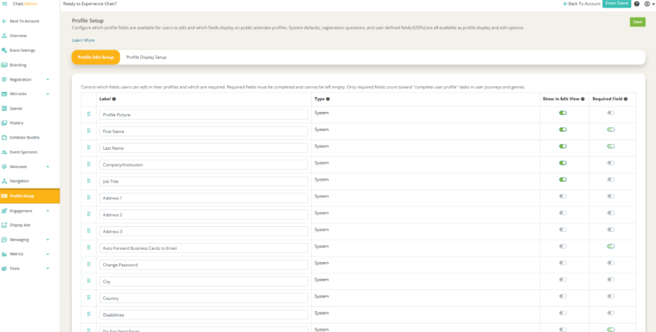 -’Profile Edit Setup’ is what the attendee sees in the virtual event environment under their profile that they can edit themselves.